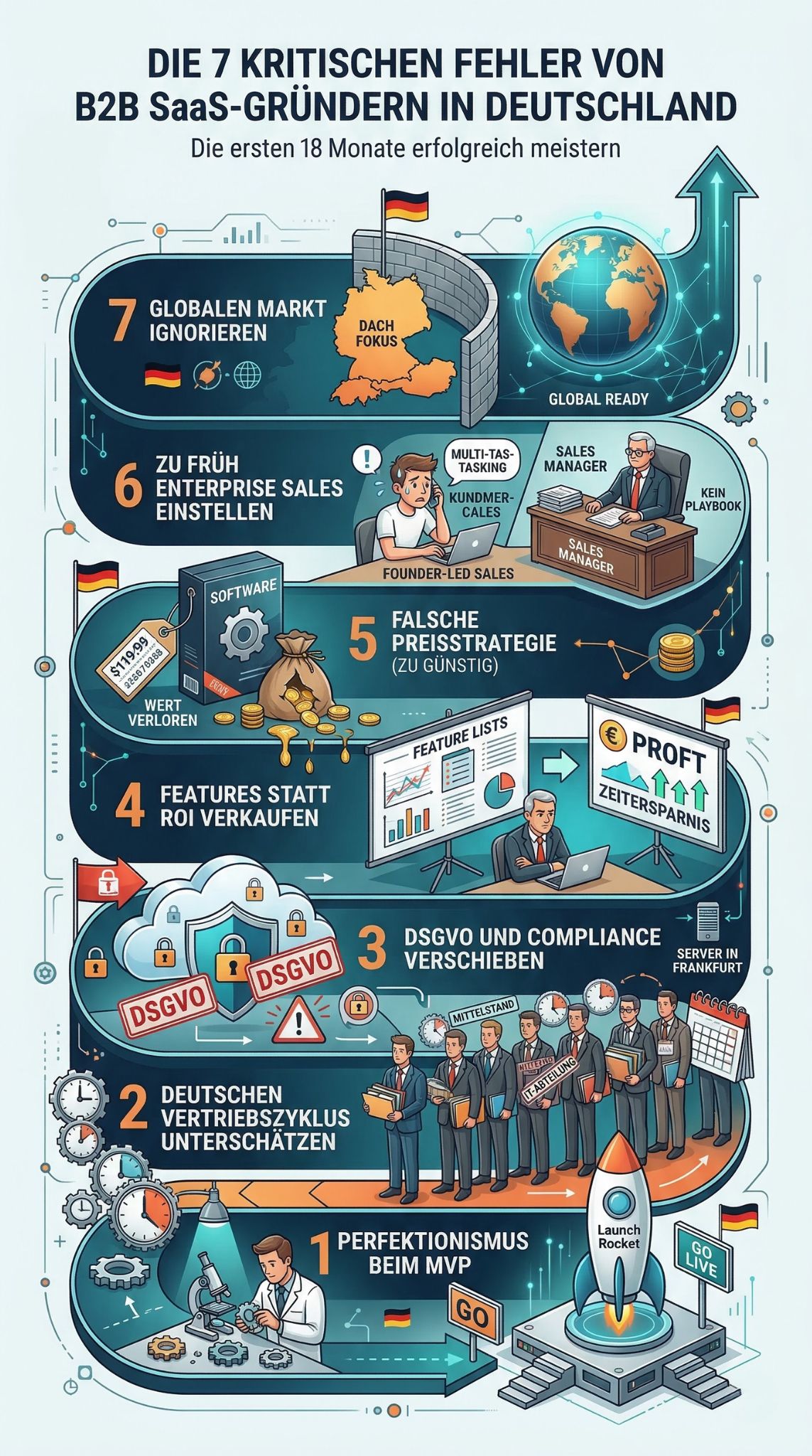 7 kritische Fehler, die B2B-SaaS-Gründer in Deutschland in den ersten 18 Monaten begehen